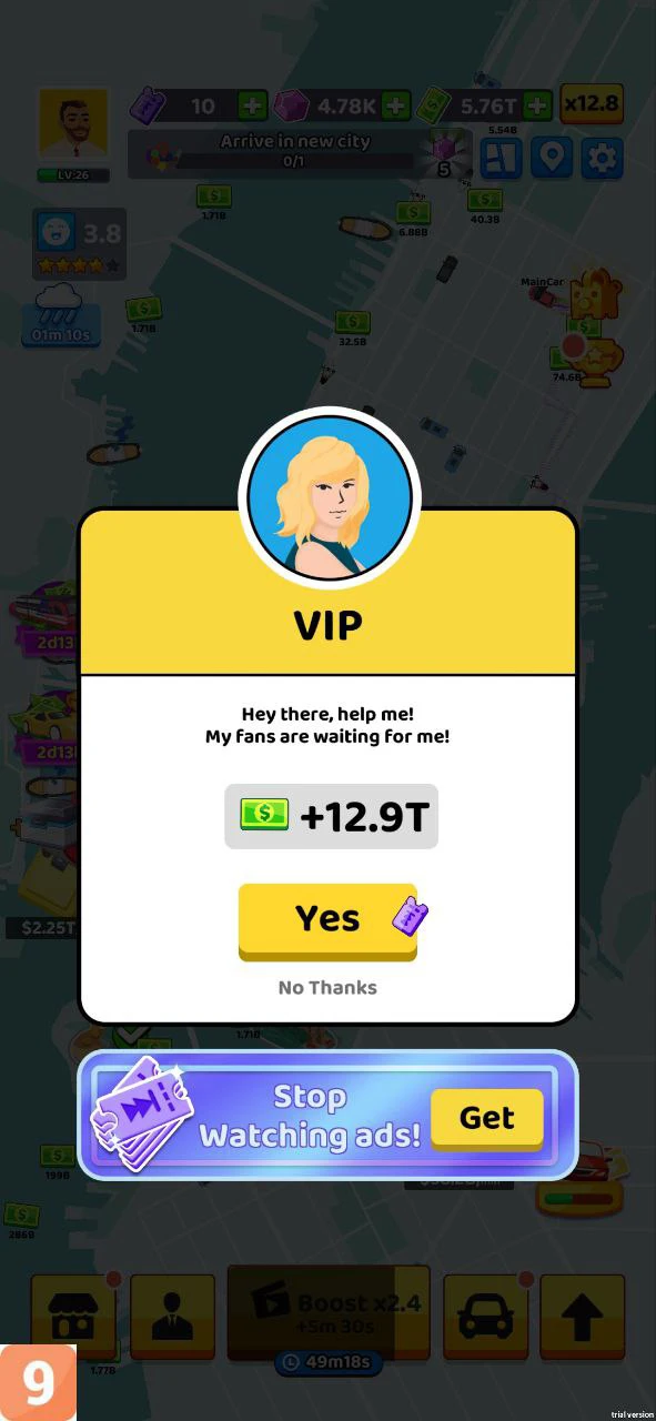 • Cho dù bạn không mở game thì công ty của bạn vẫn hoạt động. Bạn sẽ nhận được một khoản tiền lớn khi quay lại game.
